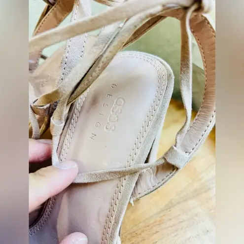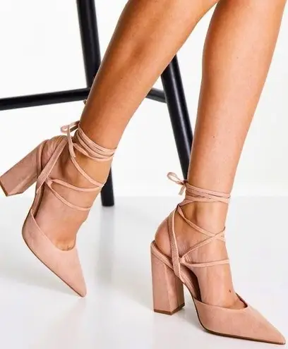 ASOS DESIGN Panda tie leg block heel shoes in taupe Size 8 - $22 - From lara