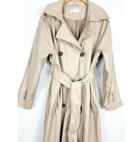 ASOS DESIGN Tan Faux Leather Trench Coat Size 12 Long Preppy Excellent condition- missing sleeve c... Show more