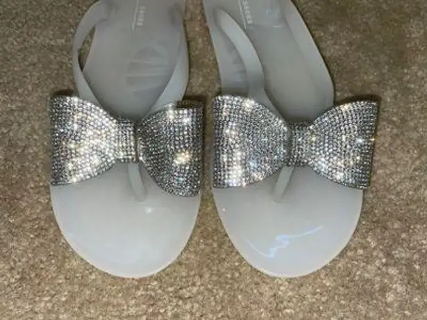 ASOS DESIGN Fatima flip-flops with embellished bows in white… Gifted to me by someone who only wore... Show more