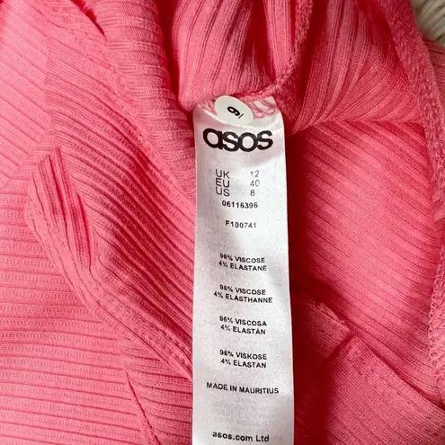 Super cute pre-owned Asos Peach Pink Ribbed Spaghetti Strap Thong Bodysuit Size 8. Snaps at the crot... Show more