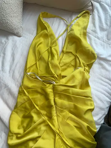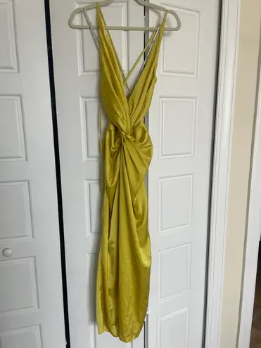NWT‼️ Yellowish/greenish satin Asos formal dress with front knot & spaghetti straps Size 2 Super fu... Show more