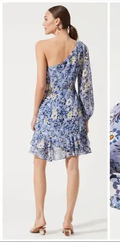ASTR Cara floral one shoulder mini dress, perfect for a spring/summer wedding or event. Features ruf... Show more