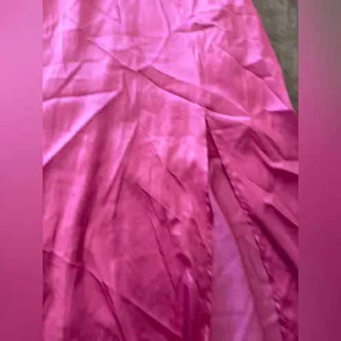 Chic pink satin chemise with a stylish slit. Ideal for elegant evenings.