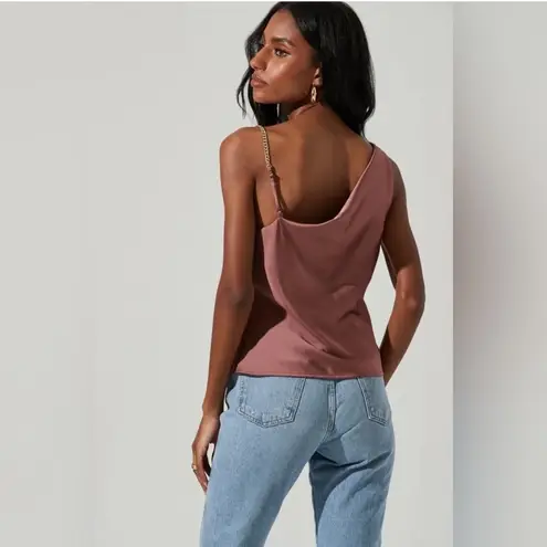 ASTR the Label satin cowl neck top with metal chain strap detailing in mauve. The chain strap is adj... Show more