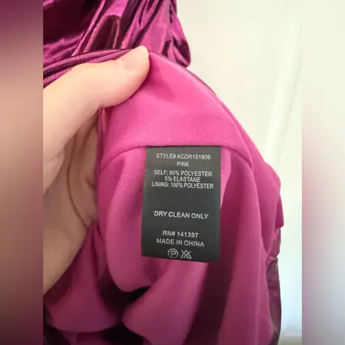 Excellent Condition - Ruching on sides - Strapless - Invisible side zipper - Shiny metallic pink/p... Show more