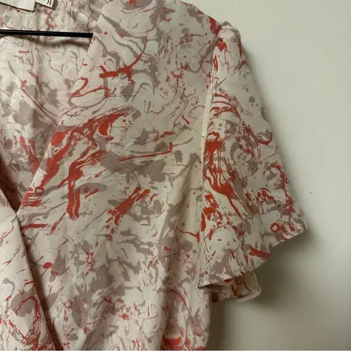 Enchanting blooms enhance the charm of this lovely V-neck blouse punctuated with fluttering sleeves.... Show more