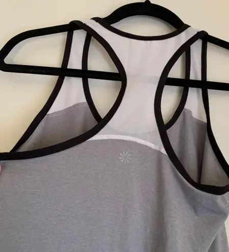 Athleta Chi Mesh racerback tank top. Gray with white mesh and black detailing. Size XS. Good con... Show more