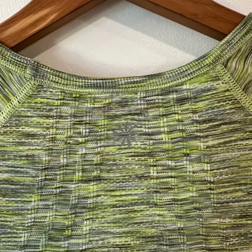 Women’s fastest track athleta t-shirt + size large + heathered green design as shown + ruched detail... Show more