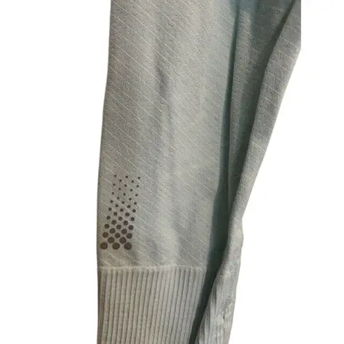 This Athleta pullover top is perfect for any outdoor or sports activity. The long sleeve top features a mock neck with a zip closure and classic/fitted sleeves. The slim fit and nylon blend material make it lightweight, quick-drying, and breathable, while also being moisture-wicking and reflective. The top comes in a solid light mint green color and is medium in size. It has a convenient pocket and is machine washable for easy care. Whether you're going for a walk, hitting the gym, or running errands, this top is versatile and stylish. The pullover top is perfect for any season, whether it's winter, summer, fall, or spring, and is suitable for various activities such as yoga, hiking, and cross-training.