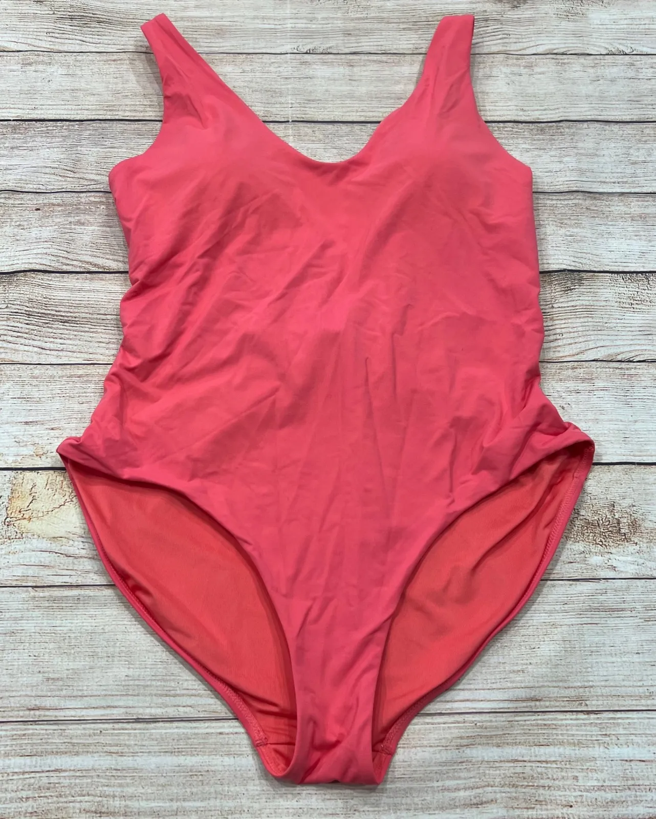 Athleta Hampton one piece swimsuit in a vibrant coral hue. Features a flattering V-neckline and a un... Show more
