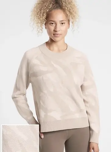 Athleta Jacquard Crew Neck Sweater Size Small Abstract Cream Camo 55% Polyester/45% Merino Extr... Show more