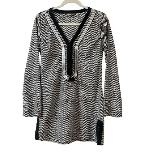 Athleta Kimssa tunic top Small Black and white herringbone pattern Deep cut neckline with ties Embel... Show more