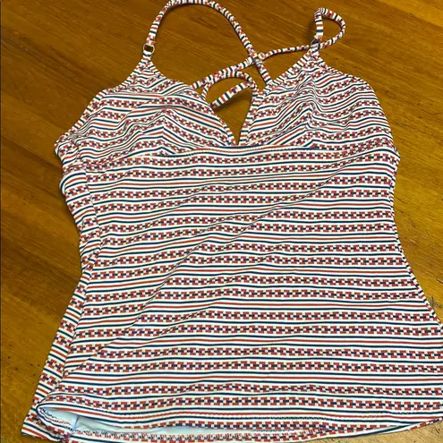 Dive into style with the Athleta one-piece swimsuit, featuring a striking red and white color scheme... Show more
