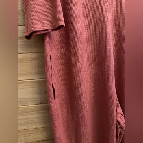 Pink Orange Waffle Texture Button Henley V Neck Long Sleeve Jogger Style Romper. Slight Washwear M... Show more
