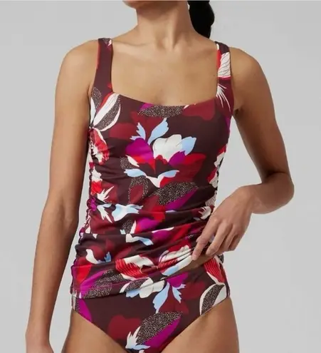 Athleta Square Neck Bra Cup Tankini Top 34B/C Hero Bloom Decadent Bottom XXS. Burgundy. Floral. Two... Show more