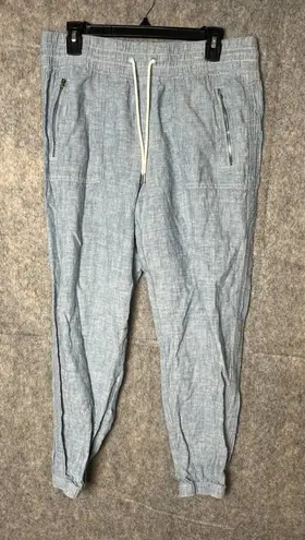 Athleta Woman Size 10 Blue Cabo 100% Linen Jogger Pants in good pre owned condition see pictures for... Show more