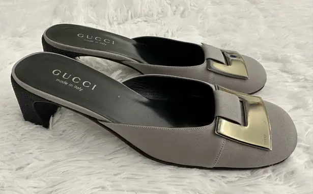 Elevate your shoe collection with these authentic Gucci closed toe mule slides. Crafted with a gray... Show more