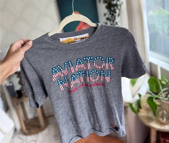 Aviator Nation Gray Short Sleeve Tee with Red and Blue Accents Size XS - $55 - From Anne