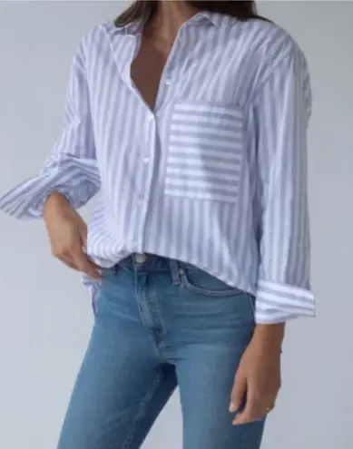 This shirt was a banker on Wall Street until she cashed out and started a new career as a florist on Nantucket. Spends her days lounging on weather-worn furniture, drinking expensive wine and smelling like fresh peonies. Long sleeve Collared Striped Oversized Measurements laying flat: Pit to pit 23" Length 27" Size XS. Like new. Crisp! No flaws to note