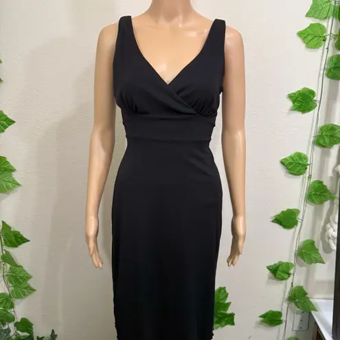 Chic sleeveless black dress with a flattering V-neckline. Perfect for any occasion. Dress by B Smart Classy Little Black Dress for any occasion- day or night Size is 3/4 V Neck with Faux Wrap Cross over Top Attached Belt to tie in back ( or however you desire ) Knee Length MIDI Measurements taken laying flat Bust 16 - 19 in Waist 15-16 in Length 38 in