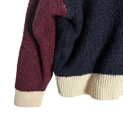 Good preowned condition. Moderate wear, no flaws. Size: Small Approximate measurements with garment laying flat: 24” bust, 21.5” length Color: Navy, Burgundy, Cream Colorblock knit (52% Wool, 33% Polyamide, 12% Viscose, 3% Acrylic) Sweater Long sleeves Mock neck Pull on Button placket OFFERS WELCOME BUNDLE & SAVE MORE SAME OR NEXT DAY SHIPPING ITEMS PACKAGED WITH CARE