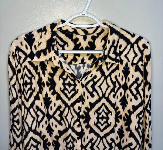 BA&SH Button Up Long Sleeve Oversized Blouse Beige with Black and orange pattern Size 2 Excellent... Show more