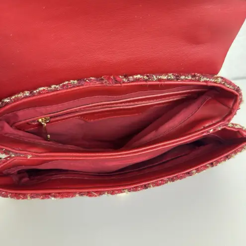Details: • Brand: Badgley Mischka • Color: Red & gold • Condition: In excellent clean condition with no flaws. Like new. Measurements (approx.): • Length: 9" • Height: 6" • Depth: 2.5" • Strap Drop: 21" ———————————————————— > I ship next day M-F. Pls consider holidays. > Msg me with questions before purchase. > Please see all measurements & photos. tags: tweed, feminine, coquette, going out, party, woven, pearl, maximalist •1266