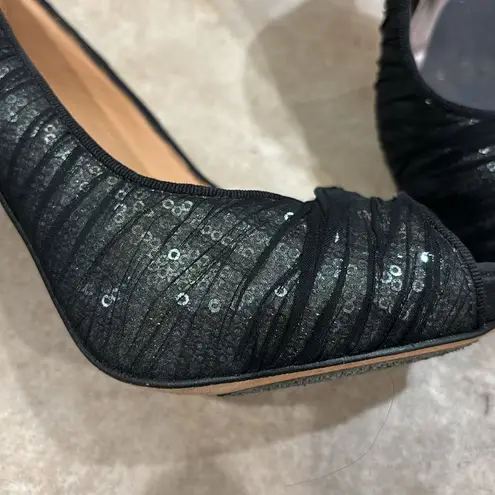Badgley Mischka Black Tulle Satin Sequin Platform Heels Size 10 - $75 - From Tara