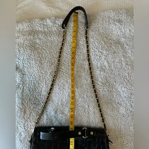 Badgley Mischka Croc Embossed Black Leather Shoulder Bag Gold Chain Link Strap See photos for... Show more