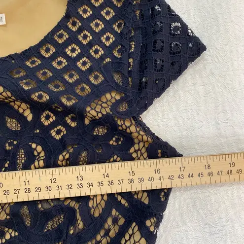 This Bailey 44 women’s blouse in size Medium features a striking black lace upper layered over a bei... Show more