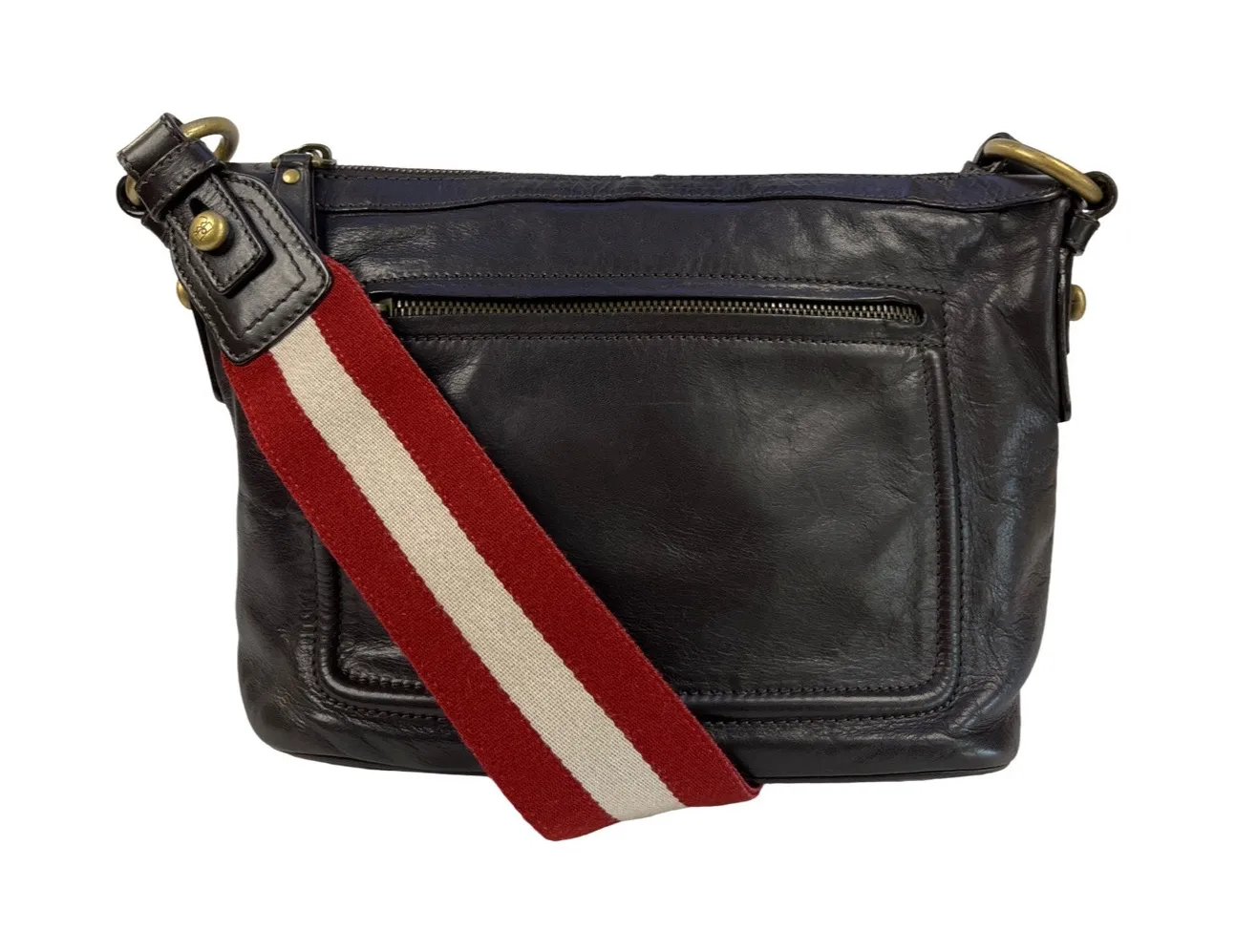 Timeless Bally craftsmanship in supple leather with signature striped strap. A classic, everyday crossbody with understated luxury appeal. Condition • Good pre-owned condition with normal signs of wear • Leather shows natural creasing and light surface wear consistent with age • Interior is clean with light use noted • Hardware shows authentic patina Details • Authentic Bally leather crossbody bag • Brown leather exterior with red and cream striped canvas strap • Adjustable shoulder strap • Zip top closure • Exterior zip pocket • Fabric-lined interior • Made in Italy • Interior metal logo plaque and leather brand tag Approximate Measurements • Lengtjh: 9.5" • Height: 7" • Width: 5" • Strap drop: 23" adjustable bally, designer bag, leather crossbody, italian leather, quiet luxury, classic bag, everyday bag, heritage brand