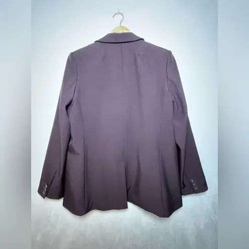 Pit to Pit: 40 in Length: 30 in Condition: Excellent, like new Elegant dark purple blazer. Id... Show more