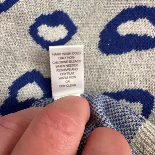 This Banana Republic cardigan showcases a striking blue leopard print on a gray base, offering a chi... Show more