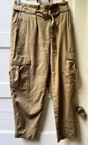 Banana Republic Womens Khaki Paper Bag Waist Belted Cargo Pants Size 8 Petite 100 percent cotton Pap... Show more