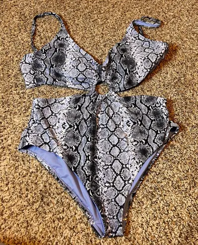 Striking snake print one-piece swimsuit, a bold choice for making a splash. The design features a un... Show more