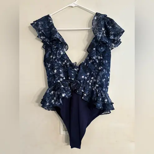 Bardot NWT Emily Ruffled Floral Print Bodysuit in a navy blue color. size 12 - $27 - From Maria