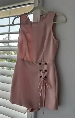 Cute and modern blush pink BCBG romper with lace-up side detail and hidden back zipper, perfect for... Show more