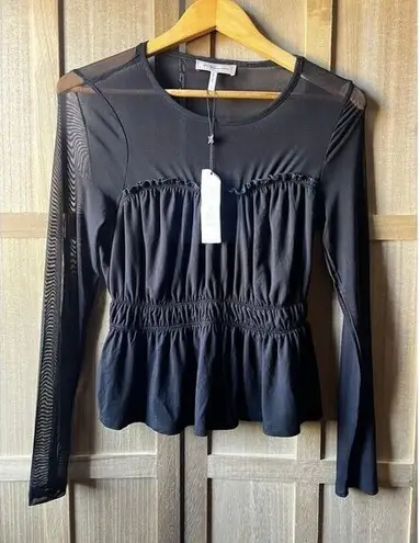 Size small Sheer mesh yoke and sleeves, ruffle trim and elastic waist 15" pit to pit, 22.5" length N... Show more