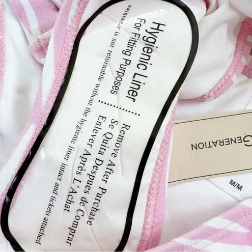BCBGeneration Striped Side Tab Bikini Bottom Pink Size M New with tag Lined Hygiene liner 80%... Show more