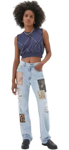 BDG High Waisted Cowboy Jeans Printed Patchwork Distressed Boho Chic Lt Wash 26 Very gently prelov... Show more