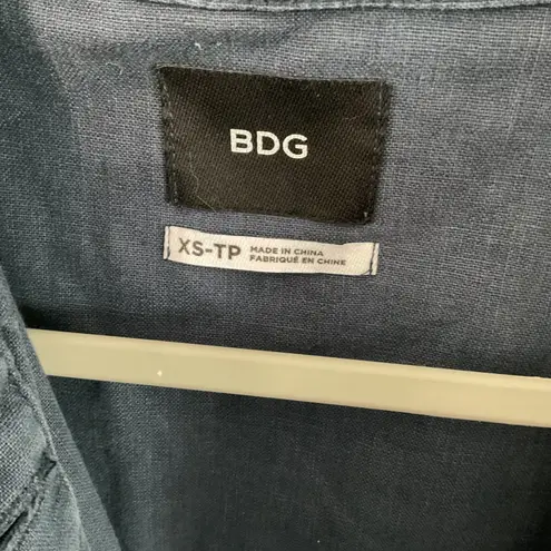 BDG utility jacket in a dark wash. Features a collared neckline, button-front closure, and multiple... Show more