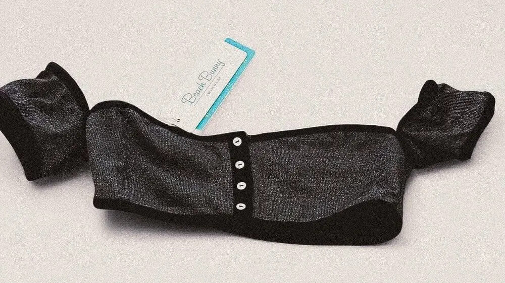 Beach Bunny Presley Off Shoulder Bikini Bralette Gray Button Down top Size S/M New with tags Heather gray off-shoulder bikini top •Black trim •Button down detail / closure •51% polyamide, 40% polyester, 9% spandex •Hand wash •Retail $120 #beachbunny #swim #bikini #pool #beach