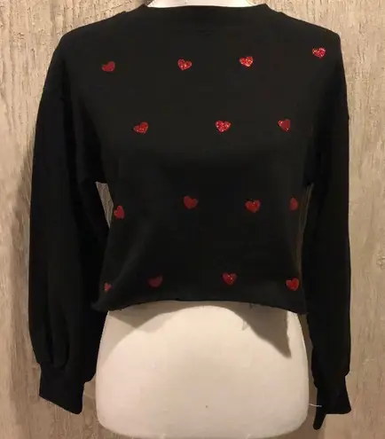 Beach Riot Black Cropped Sweatshirt with Red Glitter Hearts, Size Large - $64 New With Tags - From Melissa