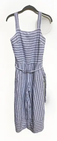 Stay cool this summer in this blue and white striped linen blend cropped jumpsuit from Beach Lunch L... Show more