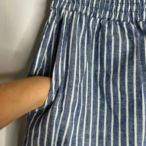 Navy and white vertical stripes Elastic stretchy waistband, pull on, drawstring, pockets, faux back... Show more