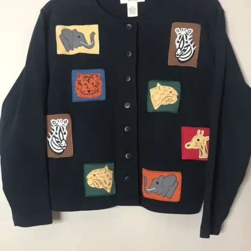 Bechamel black button up cardigan with safari animals patches petite small Size undefined - $25 - From Amber