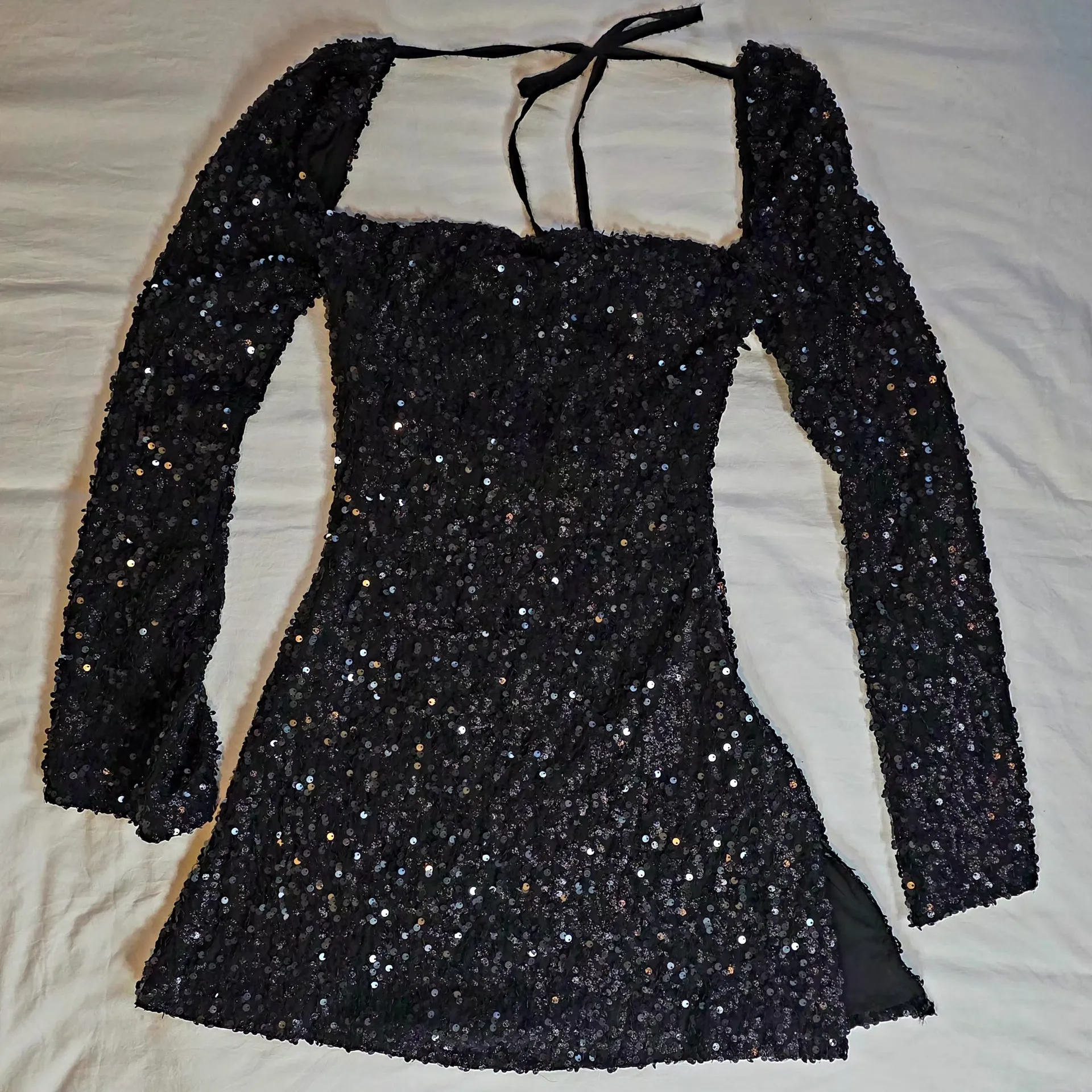 Elegant long sleeve dress with shimmering sequins. Perfect for evening occasions.