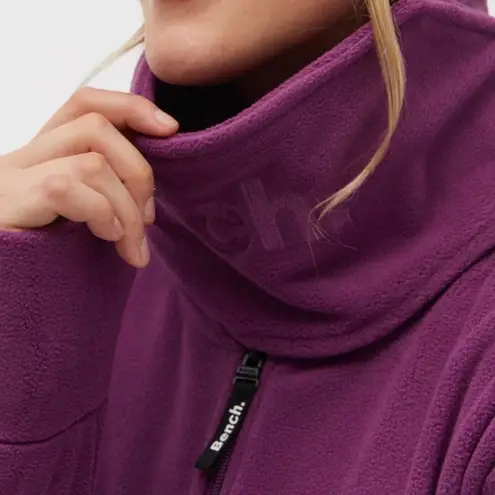 Size: Small Color: Dark Purple The Funnel Microfleece Wrap-Neck Zip-Up by Bench combines modern style with practicality. Its sleek athletic silhouette is ideal for outdoor activities or everyday use. Noteworthy features include a warm funnel neck design, minimalist logo detail, thumbholes for added comfort, and zippered pockets for essentials, ensuring warmth and versatility across seasons. Two-way front zipper Large logo outline along funnel neck Thumbholes at cuffs Two front pockets with zipper Model is 5'6 and wears size S. Wash Similar Colours Together, Wash Inside Out, Iron On Reverse, Line Dry, Keep Away From Fire 100% Polyester