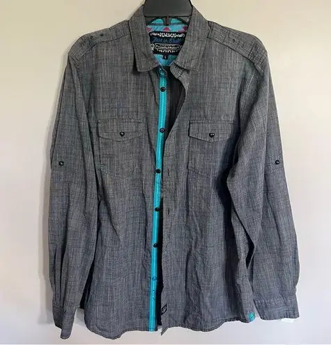 Best In Show Chambray & Teal Long Sleeve Button Front Shirt Women's Size Large Gray - $20 - From Quirky