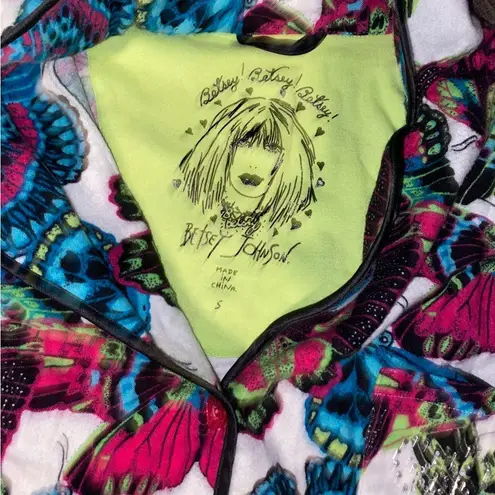Betsy Johnson Vibrant button-up shirt with a bold pattern. Features a mix of pink, blue, and green c... Show more